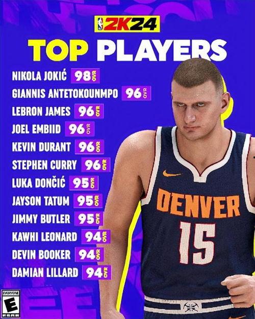 2. 尼古拉·约基奇:这位来自塞尔维亚的中锋,以其出色的传球和篮板能力著称。在2k24中,他将成为球队进攻端的重要支柱。